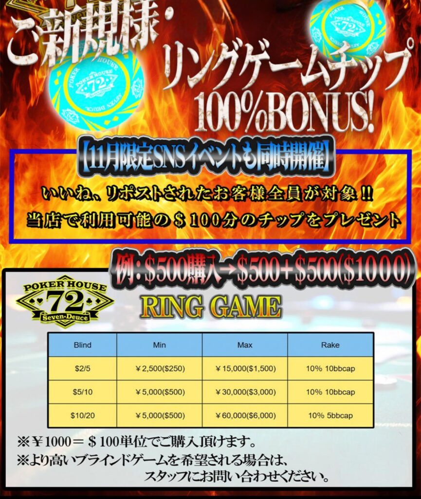 【リングゲームチップ100%BONUSイベント】を開催中⚡